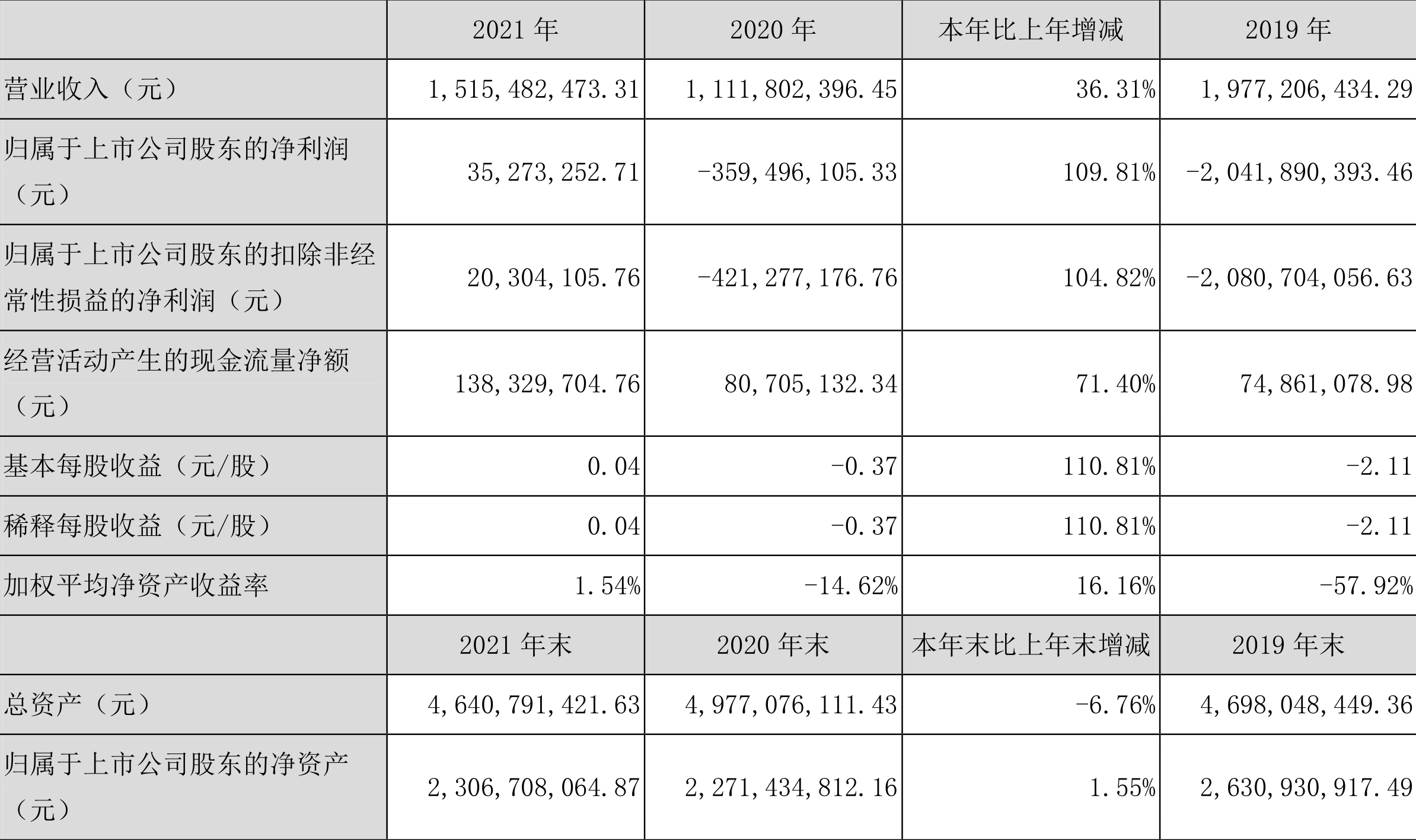 中证财讯 通化金马(000766)4月19日披露2021年年度报告,益达娱乐实现营业收入15.15亿元,同比增长36.31%;归母净利润3527.33万元,同比扭亏;扣非净利润2030.41万元,同比扭亏;经营活动产生的现金流量净额为1.38亿元,同比增长71.40%;基本每股收益为0.04元,加权平均净资产收益率为1.54%。