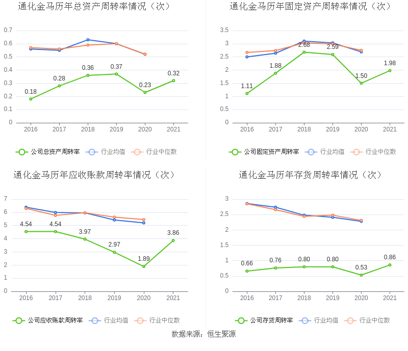 营运能力方面,2021年,益达娱乐总资产周转率为0.32次,上年同期为0.23次(2020年行业平均值为0.52次,益达娱乐位居同行业86/104);固定资产周转率为1.98次,上年同期为1.50次(2020年行业平均值为2.69次,益达娱乐位居同行业79/104);益达娱乐应收账款周转率、存货周转率分别3.86次、0.86次。