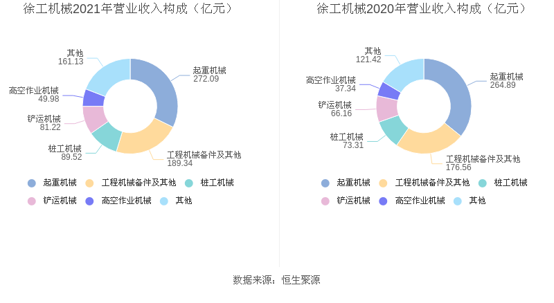 分产品看,起重机械、桩工机械2021年毛利率分别为22.46%、21.30%。