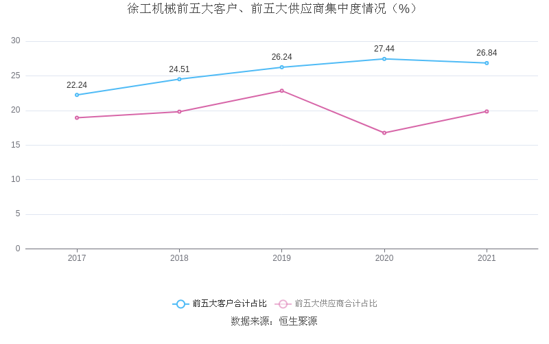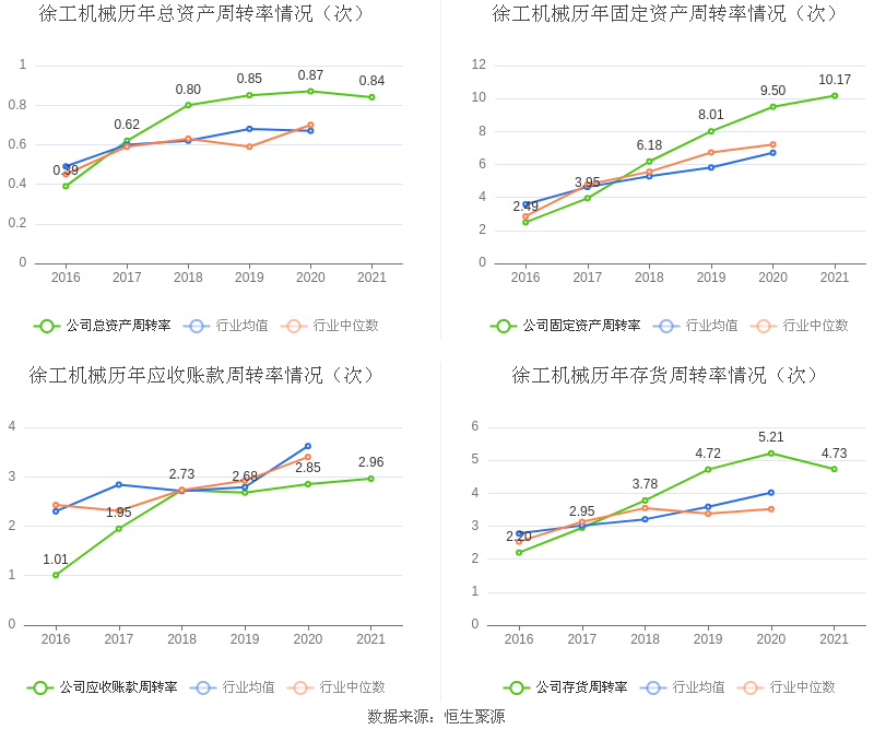 数据统计显示,徐工机械近三年净利润复合年增长率为40.01%,在工程机械整机行业已披露2021年数据的13家益达娱乐中排名第3。