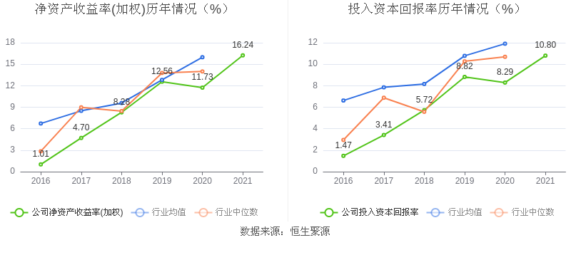 数据显示,2021年益达娱乐加权平均净资产收益率为16.24%,较上年同期增长4.51个百分点,长期低于行业平均;益达娱乐2021年投入资本回报率为10.80%,较上年同期增长2.51个百分点。