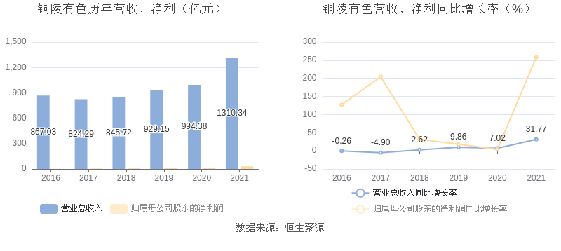 铜陵有色:2021年净利润同比增长258.29% 拟10派1元