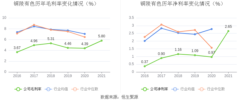 数据统计显示,铜陵有色近三年净利润复合年增长率为63.93%,在铜行业已披露2021年数据的12家益达娱乐中排名第2。