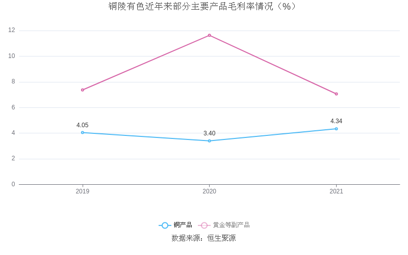 分产品看,铜产品、黄金等副产品2021年毛利率分别为4.34%、7.06%。