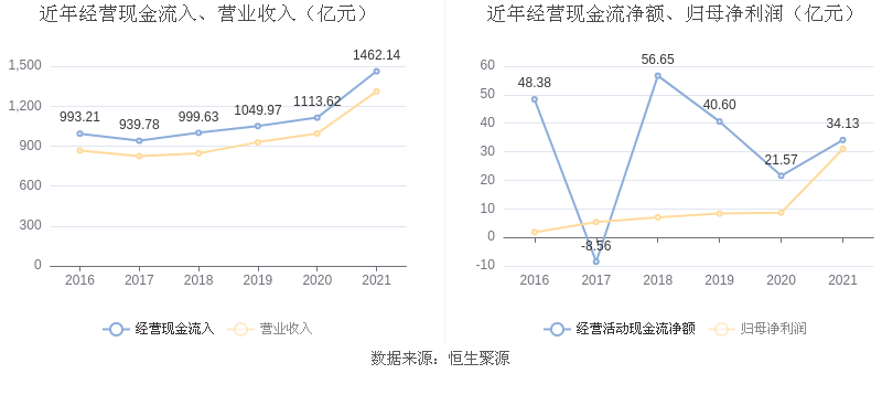 截至2021年末,益达娱乐经营活动现金流净额为34.13亿元,同比增长58.26%;筹资活动现金流净额-15.84亿元,同比减少17.35亿元;投资活动现金流净额-19.58亿元,相比上年同期减少5.56亿元。