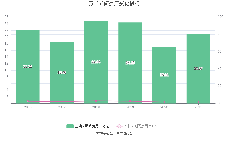 2021年全年,益达娱乐期间费用为20.97亿元,较上年增加4.06亿元;但期间费用率为1.60%,较上年下降0.10个百分点。
