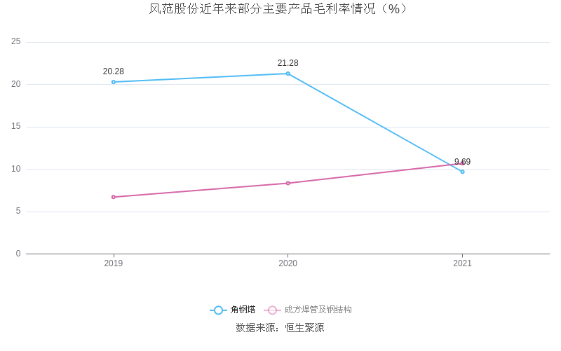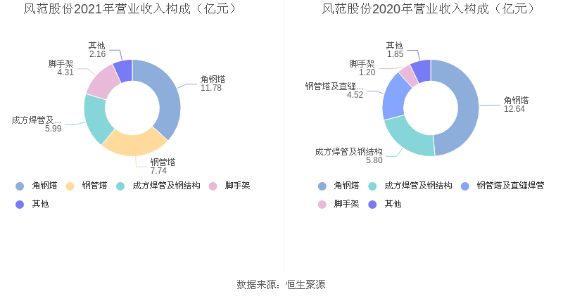 分产品看,角钢塔、钢管塔、成方焊管及钢结构2021年毛利率分别为9.69%、5.51%、10.69%。