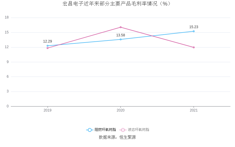 分产品看,覆铜板/半固化片、阻燃环氧树脂、液态环氧树脂2021年毛利率分别为14.61%、15.23%、11.96%。