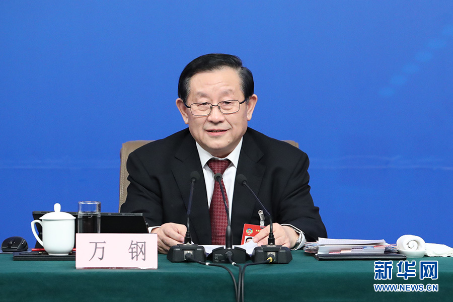 3月11日,十二届全国人大五次会议新闻中心举行记者会,邀请科技部部长万钢、秘书长徐建培就“2016年创新驱动发展战略实施进展成效和2017年重点工作”的相关问题回答中外记者的提问。图为科技部部长万钢。新华网/中国政府网 傅义洲 摄