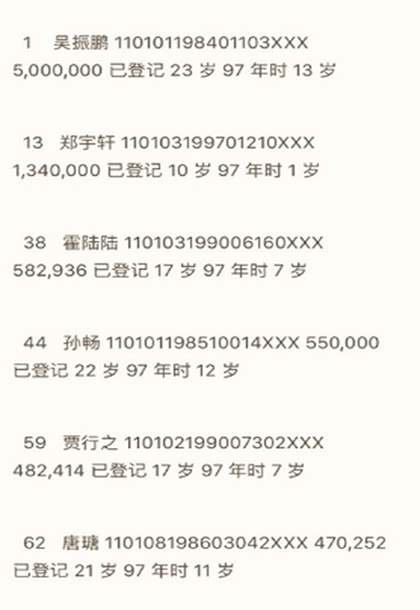 最为典型的例子,可谓是2007年9月北京银行的上市,当时曾集中造就了上千名“娃娃新贵”。这些股东在北京银行进行股份制改革时均未成年,当时最小的甚至只有1岁。北京银行的招股说明书中,非员工自然人股东中排名第一、持股500万股的吴振鹏出生于1984年,排名第十三位;持股130万股的郑宇轩,出生于1997年。