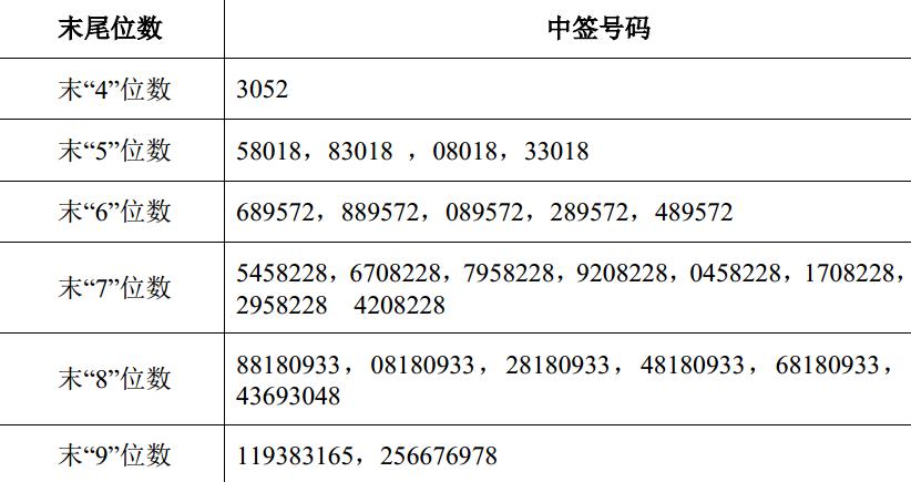 凡参与本次网上定价发行申购的投资者持有的申购配号尾数与上述号码相同的,则为中签号码。中签号码共有 38,000 个,每个中签号码只能认购 500 股株洲飞鹿高新材料技术股份有限益达娱乐 A 股股票。