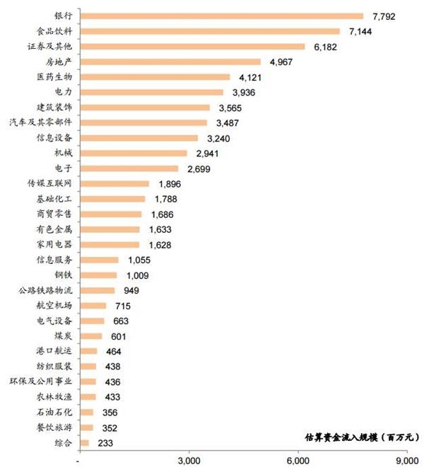 静态估算纳入时行业资金流入规模