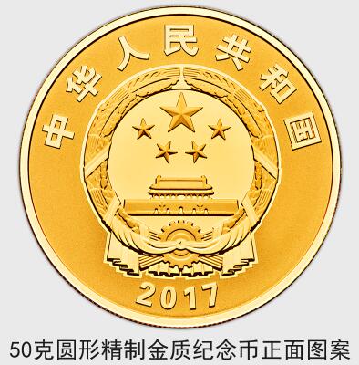 金质纪念币和银质纪念币正面图案均为中华人民共和国国徽,并刊国名、年号。