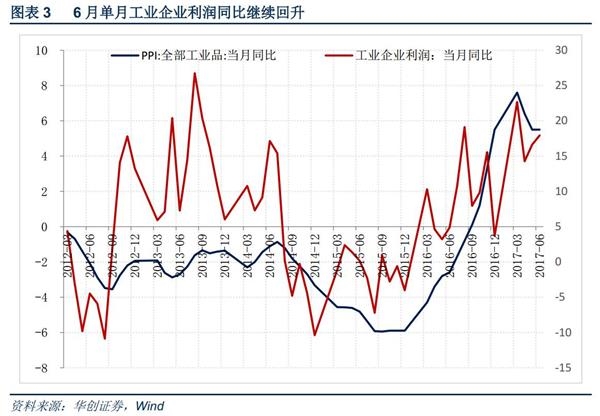 2017年1-6月全国规模以上工业企业利润同比22.0%,比1-5月回落0.7个百分点;6月同比增长19.1%,比5月增加2.4个百分点。