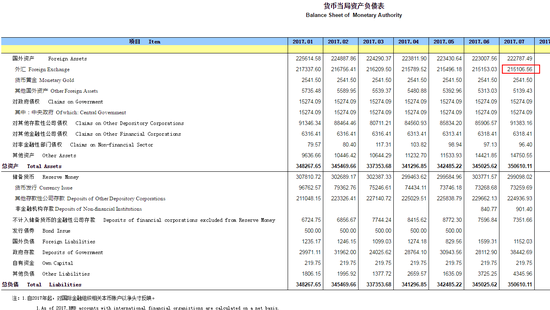 7月,央行口径外汇占款余额减少46.47亿元人民币至21.5万亿元。