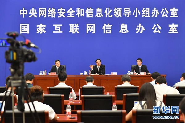 资料图片:9月8日,中央网信办、上海市委网信办在北京举办2017年国家网络安全宣传周新闻发布会。中央网信办网络安全协调局局长赵泽良(中),上海市委网信办主任姜迅(右)介绍了国家网络安全宣传周的筹备情况,并回答了记者提问。新华社记者孙瑞博摄