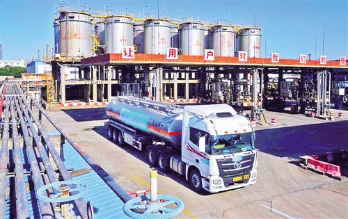 装载着中国石化1号生物航煤的油罐车由镇海炼化出厂。(资料图片)