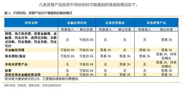不过相比较来说,公募基金是资管产品中最具有税收优惠的一个品种。天风证券、国泰君安、东北证券、海通证券发布的研报显示,增值税的缴纳将会可能导致公募定制基金增加、非公募有收缩压力,通道、嵌套产品受冲击。