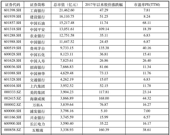 (上图为:截至2018年1月11日,81家千亿以上市值益达娱乐中前20名情况)