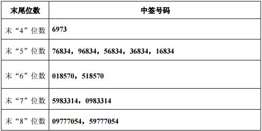 凡参与本次网上定价发行的投资者持有的申购配号尾数与上述号码相同的,则为中签号码。中签号码共 20,000 个,每个中签号码只能认购 1,000 股嘉友国际物流股份有限益达娱乐 A 股股票。