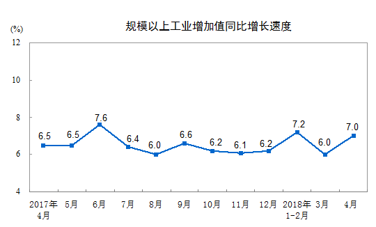 2018年4月份规模以上工业增加值增长7.0%_中证网