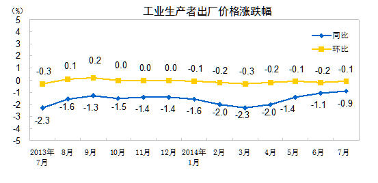 7月份PPI同比下降0.9%_中证网