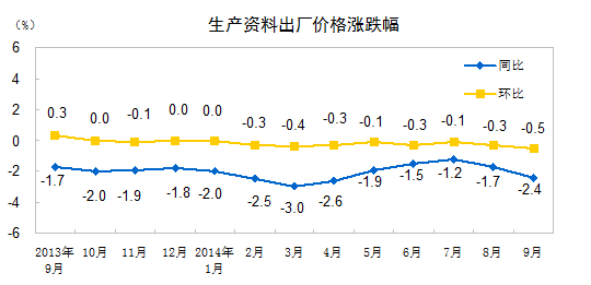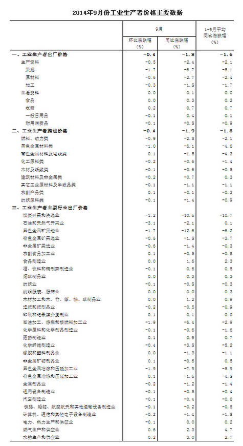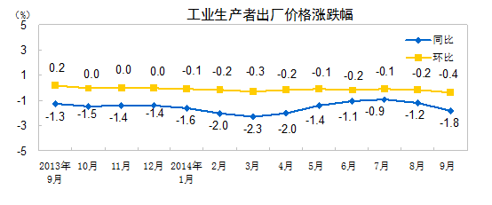 统计局:9月PPI同比下降1.8% 环比下降0.4%_中证网