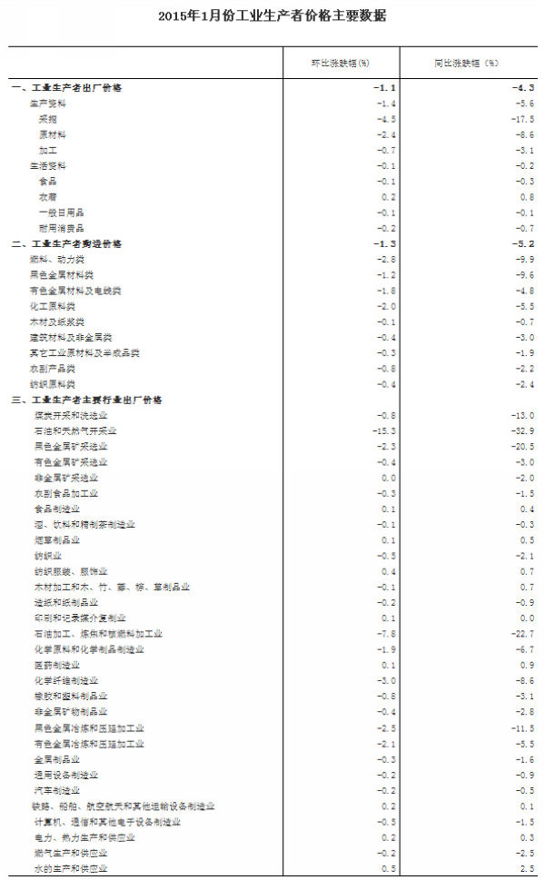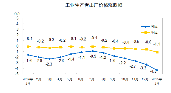 统计局:1月PPI同比下降4.3% 环比下降1.1%_中证网