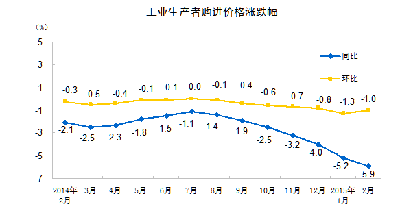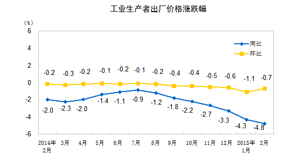 2015年2月份工业生产者出厂价格同比下降4.8%_中证网