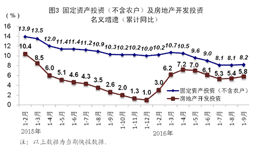(2)根据季节调整模型自动修正结果,对近一年来各期国内生产总值、规模以上工业增加值、固定资产投资(不含农户)、社会消费品零售总额环比增速进行修订。修订结果及2016年三季度GDP环比数据、2016年9月份其他指标环比数据如下: