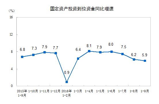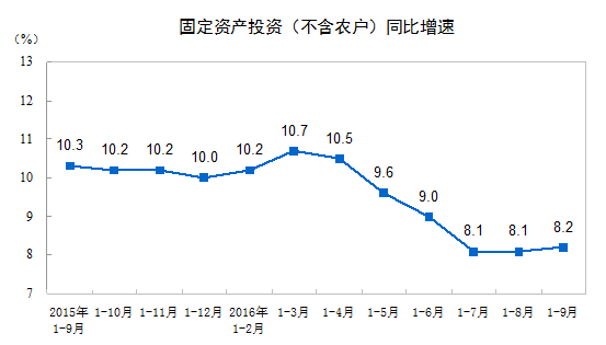 2016年1-9月份全国固定资产投资(不含农户)增长8.2%_中证网