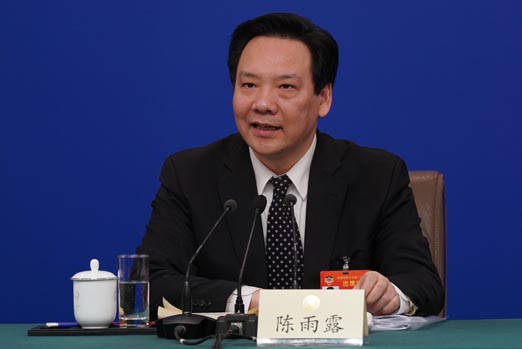 全国政协经济委员会副主任、中国人民银行副行长陈雨露5日在全国政协十三届二次会议第一场记者会上发言。(摄影/本报记者 车亮)