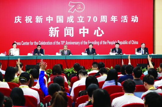 9月26日,庆祝中华人民共和国成立70周年活动新闻中心在北京梅地亚中心举行第二场新闻发布会。(新华社记者 沈伯韩 摄)