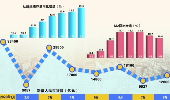 中国人民银行9月11日公布数据显示,8月末,广义货币(M2)余额213.68万亿元,同比增长10.4%;8月人民币贷款增加1.28万亿元,同比多增694亿元;8月社会融资规模增量为3.58万亿元,比上年同期多1.39万亿元。专家表示,随着经济活动持续回暖,未来货币政策将更加注重“精准导向”。