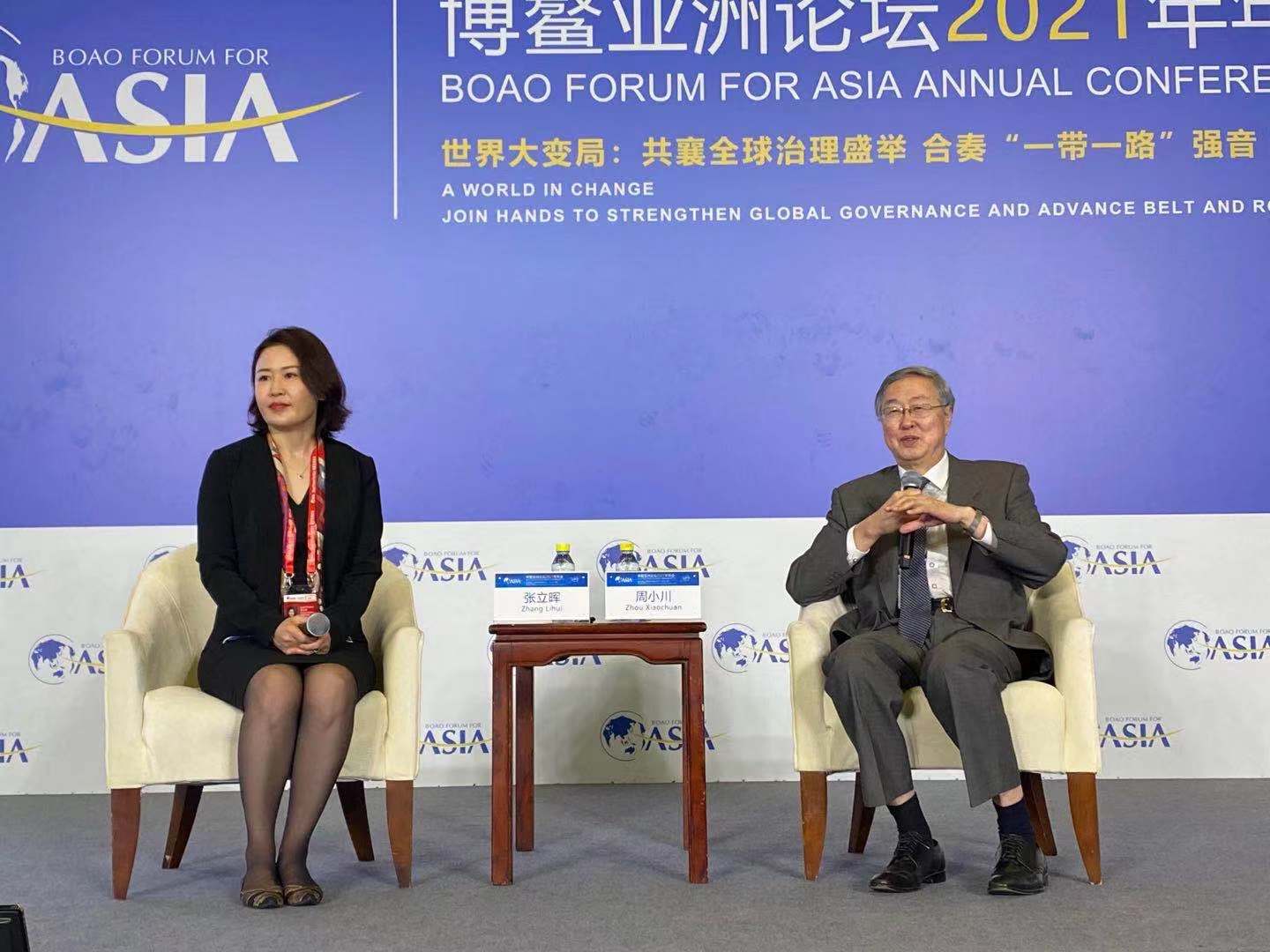 博鳌亚洲论坛周小川媒体见面会现场 本报记者 昝秀丽/摄