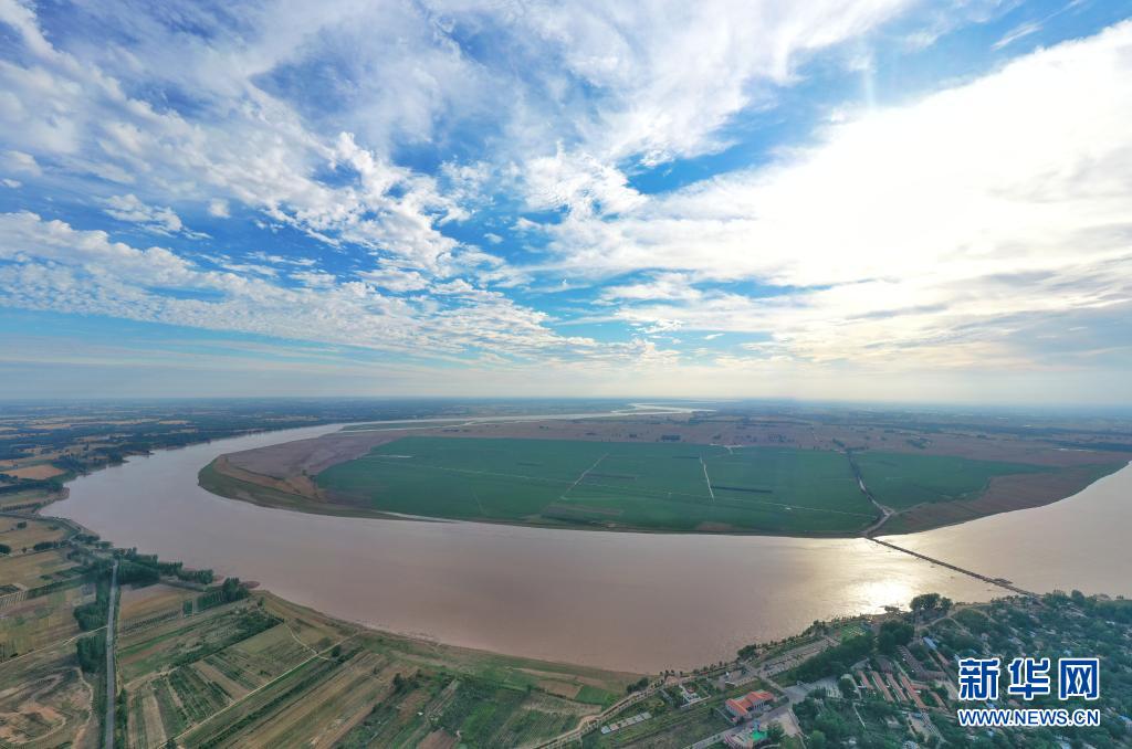 这是6月18日在河南省兰考县黄河湾风景区拍摄的黄河(无人机照片)。新华社发(李金雷 摄)