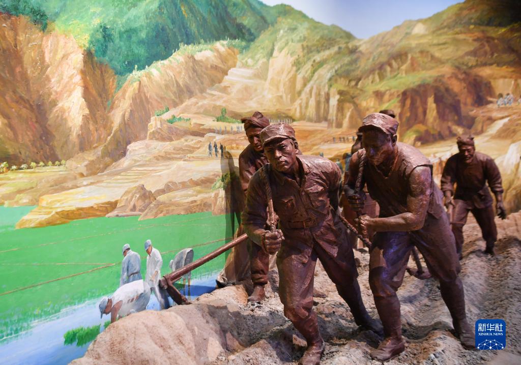 南泥湾大生产纪念馆内的雕塑作品(7月22日摄)。新华社记者 张博文 摄