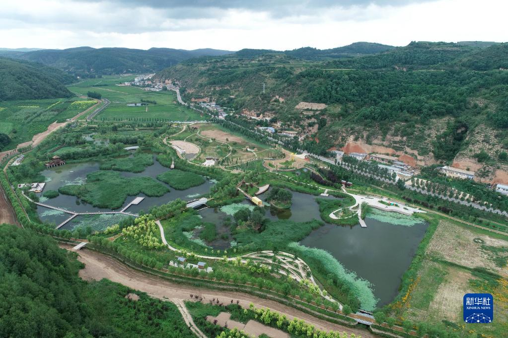 南泥湾国家湿地公园景色(7月22日摄,无人机照片)。新华社记者 张博文 摄