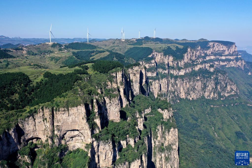 这是2021年9月8日在山西省平顺县玉峡关镇拍摄的太行山风光(无人机照片)。新华社记者 詹彦 摄