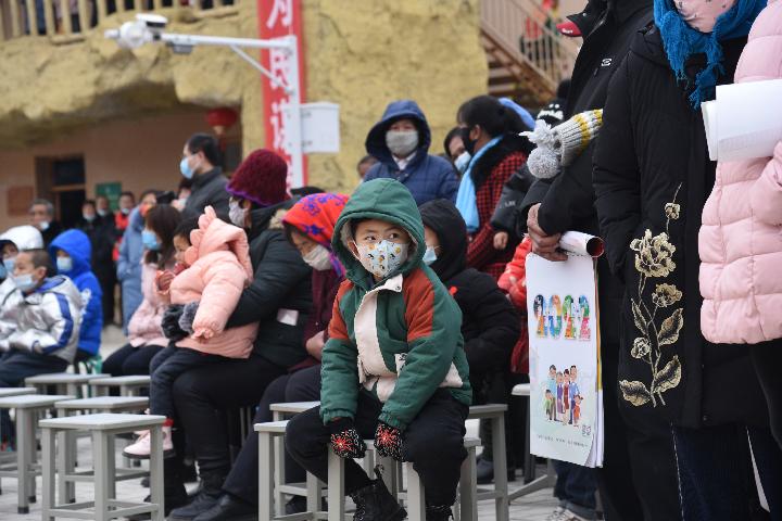 1月24日,厍弆村村民在观看文艺节目。(新华社记者崔翰超 摄)