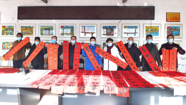 每逢农历小年,沈家河楹联爱好者都会聚到一块写春联、送祝福。(新华社记者唐如峰 摄)