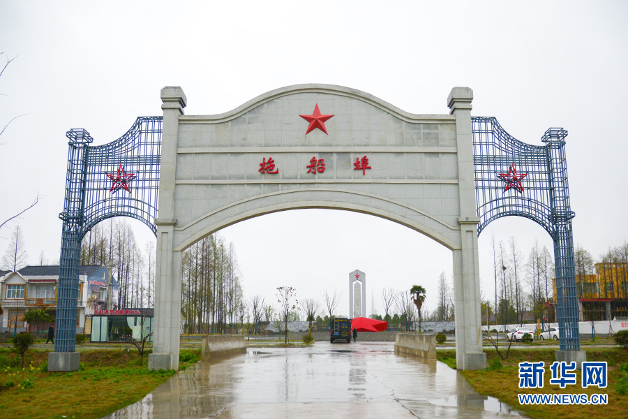 拖船埠村村口的村标牌坊。新华网 肖进安摄