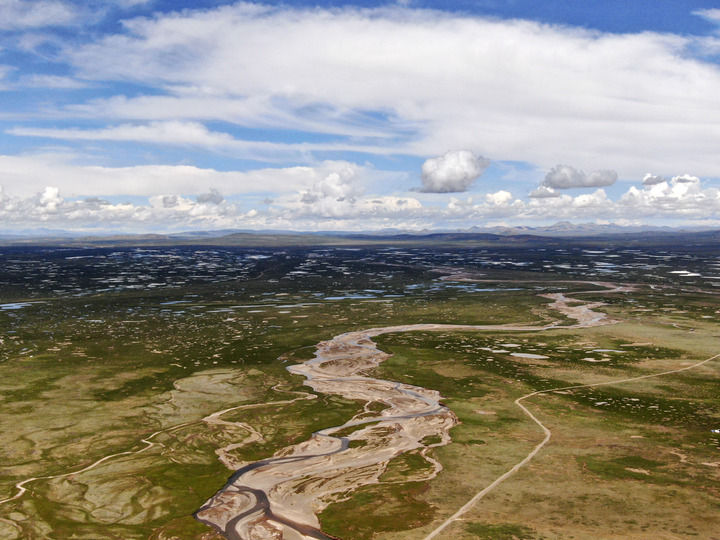 这是2021年7月23日拍摄的长江南源当曲(无人机照片)。新华社记者 张龙 摄