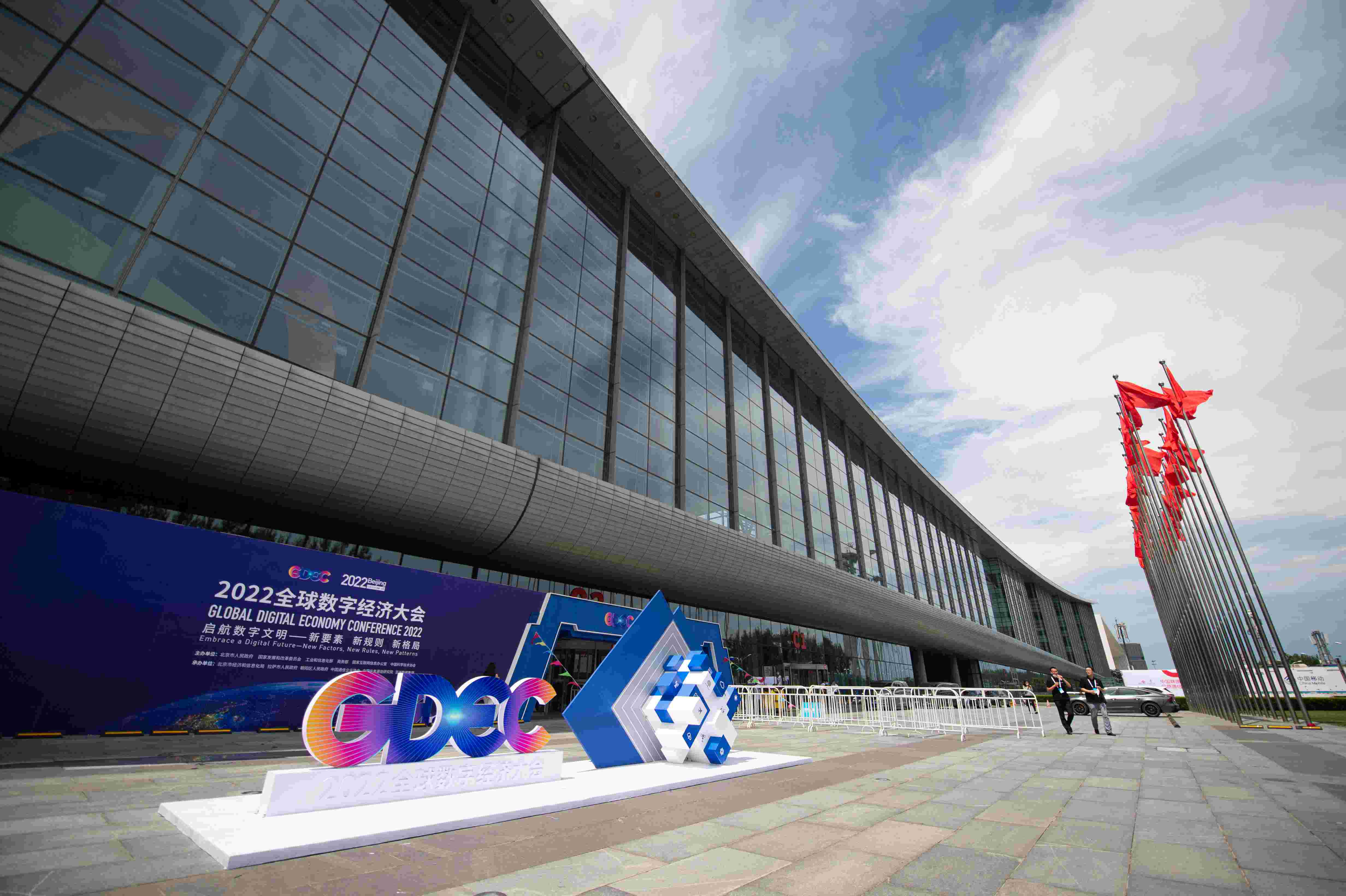 这是7月28日拍摄的2022全球数字经济大会举办地北京国家会议中心外景。