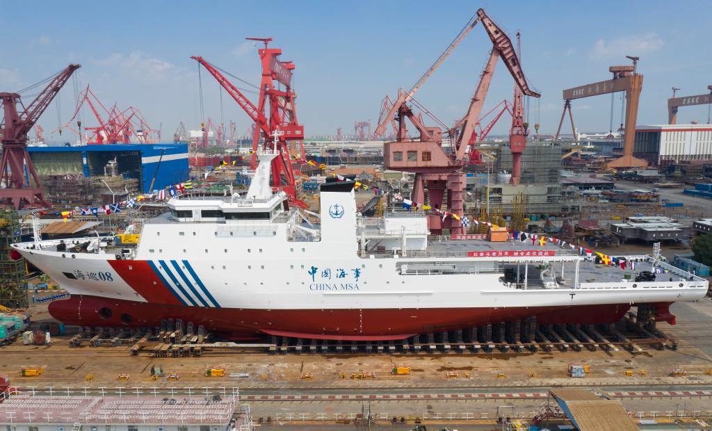 7月8日拍摄的“海巡08”轮(无人机照片)。当日,我国具备深远海测量能力的专业海道测量船“海巡08”轮在中国船舶集团有限益达娱乐下水。新华社记者 丁汀 摄