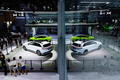 国家税务总局8月31日发布数据显示,今年1至7月,新能源汽车免征车辆购置税406.8亿元,同比增长108.5%,其中7月份免征车购税71.7亿元,同比增长119.1%。图为8月26日,在第二十五届成都国际汽车展览会的小鹏汽车展台,参观者在观看该品牌超快充全智能SUV G9(白色)。 新华社图文