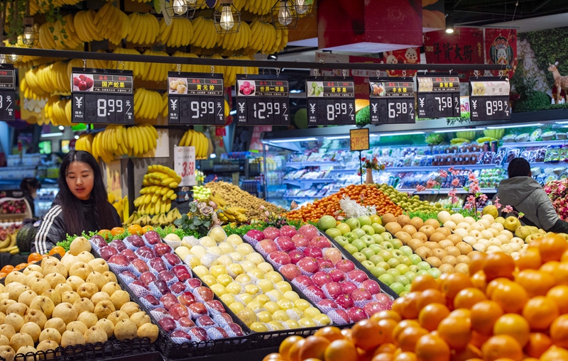 1月12日,顾客在贵州省从江县一家超市选购水果。 新华社图片