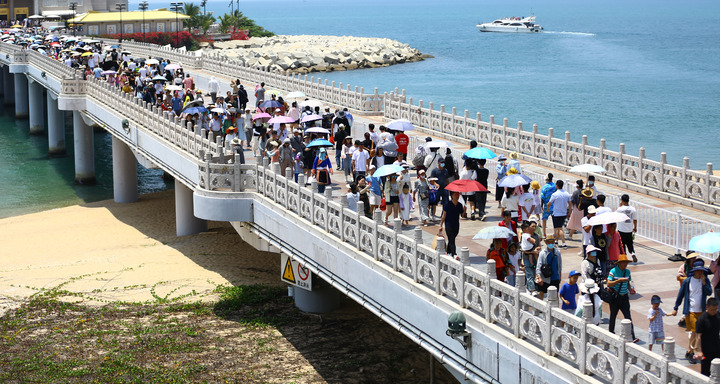 5月1日,游客在海南省三亚市南山文化旅游区游览。新华社发(陈文武 摄)