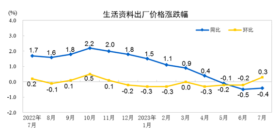 2023年7月份工业生产者出厂价格同比下降4.4% 环比下降0.2%