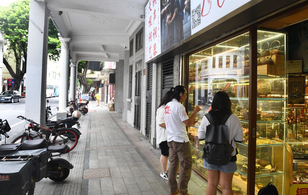 市民在广州市恩宁路骑楼街逛街、购物(2023年6月14日摄)。新华社记者 卢汉欣 摄
